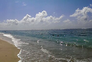 Docela populární pláž, která je ideální pro surfování a další vodní sporty. Tam je směs jemného bílého a tmavého písku a být nalezený tam.