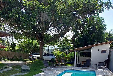 Suíte em casa de família se nachází ve městě Florianópolis a nabízí bazén, sdílený lounge, zahradu, výhled do zahrady a bezplatné Wi-Fi.
