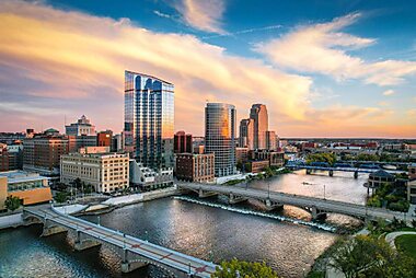 This Michigan hotel overlooks the Grand River and is connected to the Grand Rapids Convention Center. Every room includes a flat-screen TV.