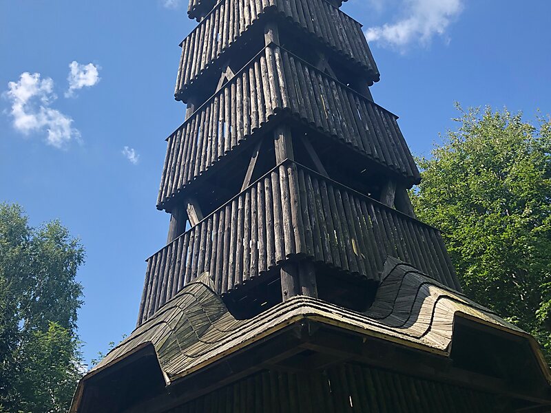 V roce 1991 zde byla vybudována dřevěná 16 m vysoká, volně přístupná vyhlídková věž, ze které se nabízí dobrý výhled na všechny světové strany. Mimo jiné třeba za dobré viditelnosti na Malou Fatru.