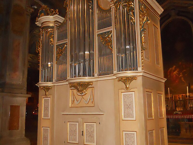 Interiér uchovává díla lombardského baroka: malby Camilla Procacciniho a Crespiho. V kapli della Nativita je umístěn obraz Klanění pastýřů od Camilla Procacciniho.
