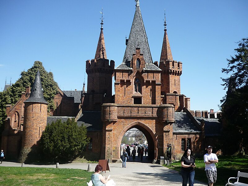 Really two chateaus in one, the white Empire-style one is guarded by the ramparts of its red neo-Gothic counterpart. A fairy tale sight.