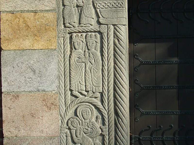 På vestindgangen hænger der to stenudhugninger udført af den berømte stenmester Horder, der virkede på Djursland i 1200-tallet.