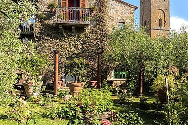 Die Unterkunft Romantica Pucci mit Stadtblick in Bagnoregio bietet Übernachtungsmöglichkeiten mit einem Garten und einem Restaurant.