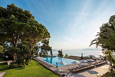 Das Corfu Imperial, A Grecotel Resort to Live erwartet Sie auf einer privaten Halbinsel mit uneingeschränktem Blick auf das Ionische Meer.