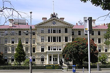 New Zealand's Old Government Buildings sit on the Government Buildings Historic Reserve, on Lambton Quay in central Wellington.
