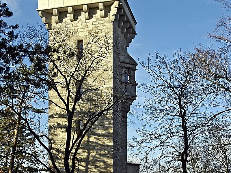 Nahezu zehn Jahre hatte der Alteburg-Thurm-Bauverein unter seinem Vorstand gebraucht, um die benötigten 21.500 Mark zu sammeln. Daher konnte erst im Frühjahr 1902 mit dem Bau begonnen werden. Am 9. August 1902 fand die Einweihung des Turmes statt; mit Worten des Dankes an die beteiligten Handwerksmeister und Gesellen übernahm Oberbürgermeister Bielfeld den Turm in die Obhut der Stadt.