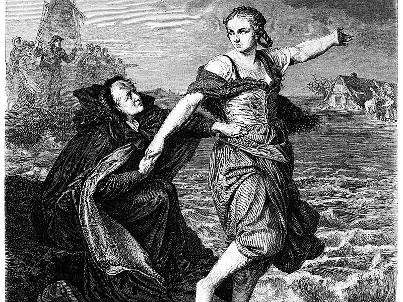 Johanna Sebus aus Brienen bei Kleve am Niederrhein rettete bei einem Dammbruch zunächst ihre Mutter aus den Fluten des Rheins und kam dann ums Leben, als sie weiteren Menschen helfen wollte. Ihre Leiche wurde beim Abfließen des Wassers gefunden und auf dem Friedhof in Rindern beerdigt. 1872 wurde ihr Grab beim Bau einer neuen Kirche in das Gebäude integriert.