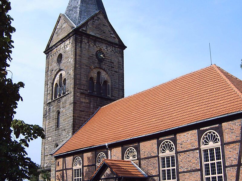 Das in Fachwerkbauweise errichtete Kirchenschiff ist dreischiffig. Im Inneren befindet sich eine Hufeisenempore. Die Decke des Mittelschiffs ist gewölbt, die Seitenschiffe verfügen über eine flache Decke. Das Orgelprospekt stammt aus dem Jahr 1905 und wurde von Wilhelm Rühlmann geschaffen.