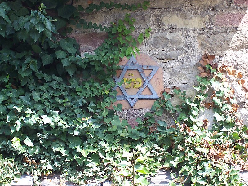 Im Februar 1881 wurde das Synagogengebäude verkauft. Ein farbig gefasster Hochzeitsstein erinnert an die Vergangenheit des Gebäudes.