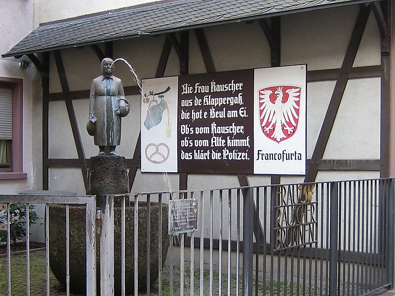 Frau Rauscher soll im 19. Jahrhundert in der Frankfurter Klappergass gelebt haben. Die Überlieferung berichtet, dass an einem Sonntagnachmittag die Fraa Rauscher mit einer Beule am Kopf auf der Straße liegend angetroffen und von Jungen verspottet worden sei.
