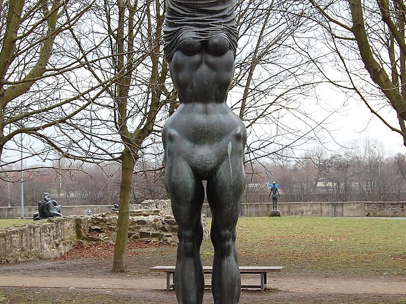 Die Plastik wurde vom Bildhauer Wieland Förster geschaffen und entstand mit mehreren Überarbeitungen in den Jahren 1971 bis 1974 und 1997. Sie gilt als eines der wichtigsten Werke der Bildhauerei in der DDR. Das Werk besteht aus Bronze und hat eine Höhe von 3,18 Meter. Es stellt eine Frau mit empor gestreckten Armen dar, wobei die Proportionen deutlich überstreckt sind. Die Figur ist nur mit einem Stück Stoff bekleidet, das Gesicht und Schultern bedeckt und gerafft auf den Brüsten aufliegt. Die „Körperlandschaft“ des Akts ist so in besonderer Weise betont. Die Frau wirkt wie im Ausziehen erstarrt.