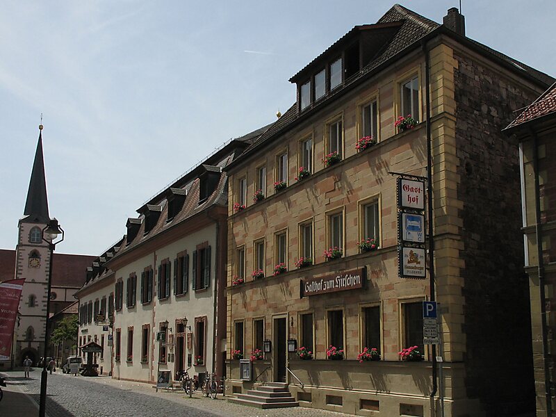 Wahrzeichen der Stadt sind das Rathaus im Zentrum mit Marktbrunnen, das Kellereischloss mit Schlossweiher und das über der Stadt thronende Schloss Saaleck.