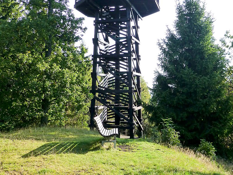 Auf dem bewaldeten Berg steht der Aussichtsturm Heidekopfturm.