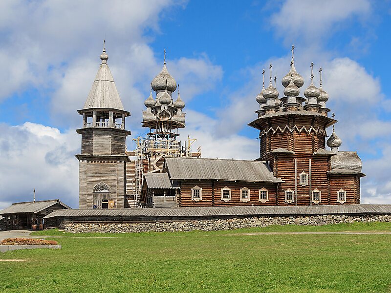 Die Holzkirchen von Kischi Pogost befinden sich auf der Insel Kischi im westlichen Teil des Onegasees in Russland. Die im Jahre 1714 erbaute, 35 m hohe Verklärungskirche, die von 22 Zwiebeltürmen bekrönt und von 30.000 Schindeln aus Espenholz gedeckt wird, gilt als der kühnste erhaltene Holzbau Russlands, bei dem kein Nagel verwandt wurde. Sie ist Nachfolger einer abgebrannten Kirche und heute die einzige erhaltene Mehrkuppelkirche der Welt in Holzbauweise. Nach lokaler Legende soll die Kirche das Werk des legendären Baumeisters Nestor sein, der nach Vollendung seine Axt in den Onegasee geschleudert haben soll, damit nie mehr so ein prächtiger Bau entsteht. Die Verklärungskirche wird derzeit restauriert und soll erst zum 300. Jubiläum im Jahre 2014 wieder eröffnet werden.