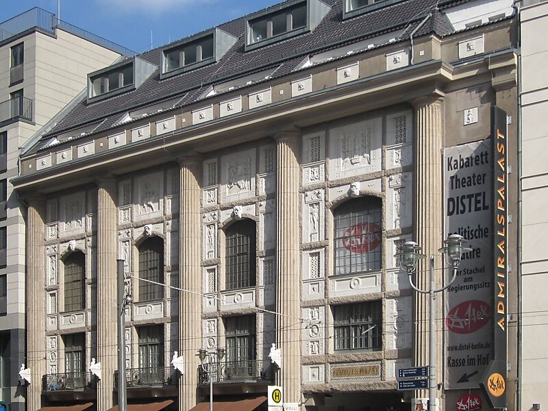 Das Kabarett-Theater Distel ist das derzeit größte Ensemble-Kabarett Deutschlands und hat deutschlandweit einen hohen Bekanntheitsgrad. Die Distel wurde 1953 als Ost-Berliner Gegenpol zu älteren West-Berliner Kabaretts gegründet. Das Theater befindet sich seitdem im Vorderhaus des Admiralspalastes direkt am Bahnhof Friedrichstraße in Berlin-Mitte.Es bietet tagesaktuelle Kabarettprogramme zu politischen und allgemein gesellschaftlichen Themen. Das Kabarett pflegt die Tradition des klassischen Nummern-Kabaretts, das mit Sketchen, Parodien, Monologen, sarkastischen Liedern und Live-Musik temporeiche und unterhaltende Programme inszeniert.