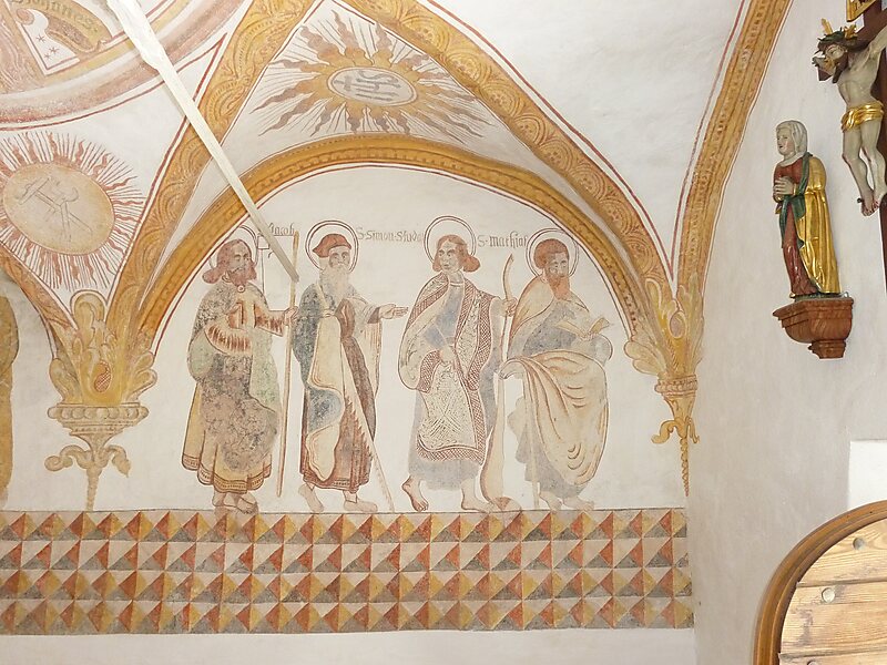 Die kleine Kapelle mit einer Ausdehnung von 6 auf 4,7 Metern ist ein mit Steinplatten gedeckter Rechteckraum mit Tonnengewölbe. Sie ist dem Pestheiligen Rochus von Montpellier geweiht. Die Konsekration fand am 7. August 1592 oder 1593 statt. Erwin Poeschel fand die Kapelle um 1940 unbemalt vor; die Bemalung wurde jedoch in einem Visitationsprotokoll von 1658 erwähnt. Die Malereien von Hans Ardüser stammen aus der Zeit um 1593 und wurden anlässlich einer Restauration um 1980 freigelegt. Dargestellt sind Apostelfiguren und -symbole, die Muttergottes, Engel und Leidenswerkzeuge.