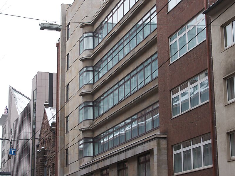 Das Bürogebäude Kasernenstraße 61 in Düsseldorf wurde von 1928 bis 1930 nach Entwürfen von Ernst Schoeffler, Carlo Schloenbach und Carl Jacobi als Erweiterungsbau der Allgemeinen Ortskrankenkasse erbaut. Der Gebäudekomplex, bestehend aus einem fünf- und einem siebengeschossigen Gebäude, „gilt als herausragendes Beispiel für das Neue Bauen in Düsseldorf“. Das Gebäude vermeidet Monotonie, „die Fassade zeichnet sich durch ausgewogene Kontraste zwischen Werkstein und Backstein, horizontalen und vertikalen Gliederungselementen sowie geschlossenen und durchfensterten Flächen aus“. Der Bau zeigt verschiedene Fensterformen und Geschosshöhen und in der Fassade Vor- und Rücksprünge. An der Fassade findet sich im ersten Obergeschoss eine Skulptur des Düsseldorfer Bildhauers Leopold Fleischhacker.
