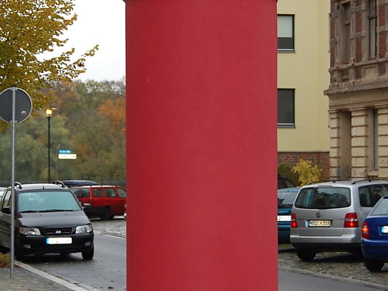 Die steinerne Säule steht an der Ecke Bleckenburgstraße/Fährstraße im Magdeburger Stadtteil Buckau.