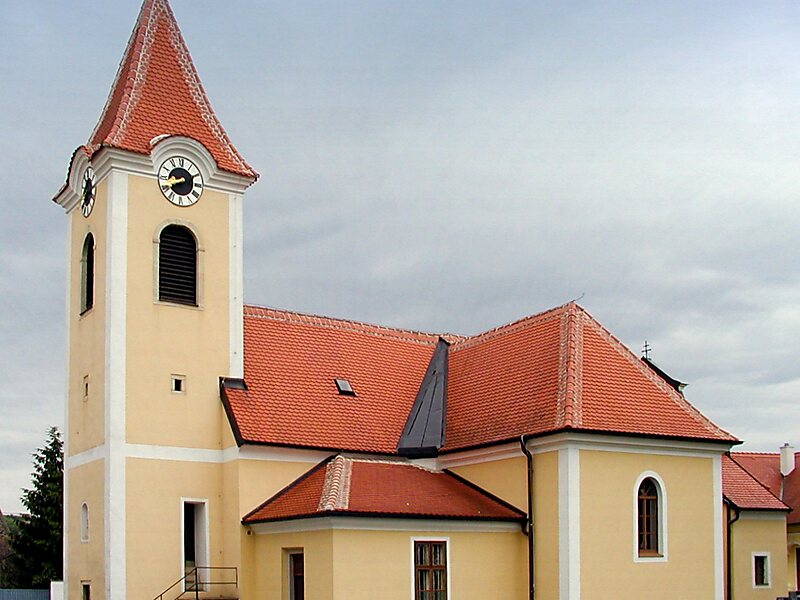 Die spätbarocke schlichte römisch-katholische Saalkirche mit Nordturm ist nach Norden ausgerichtet. Sie gehört zum Dekanat Sitzendorf im Vikariat Unter dem Manhartsberg und steht gemäß Verordnung des Bundesdenkmalamtes unter Denkmalschutz.