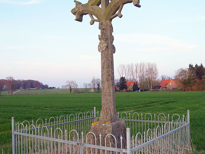 Das aus Baumberger Sandstein gefertigte, rund 4,30 Meter hohe Schaftkreuz befindet sich wenige Meter abseits der Landstraße 581 von Havixbeck nach Billerbeck. Es liegt damit an einer alten Via Regia, die von Coesfeld kommend über Billerbeck und Havixbeck nach Münster führte. Es steht auf einem zweiteiligen steinernen Sockel, auf dem die inzwischen stark verwitterte Inschrift