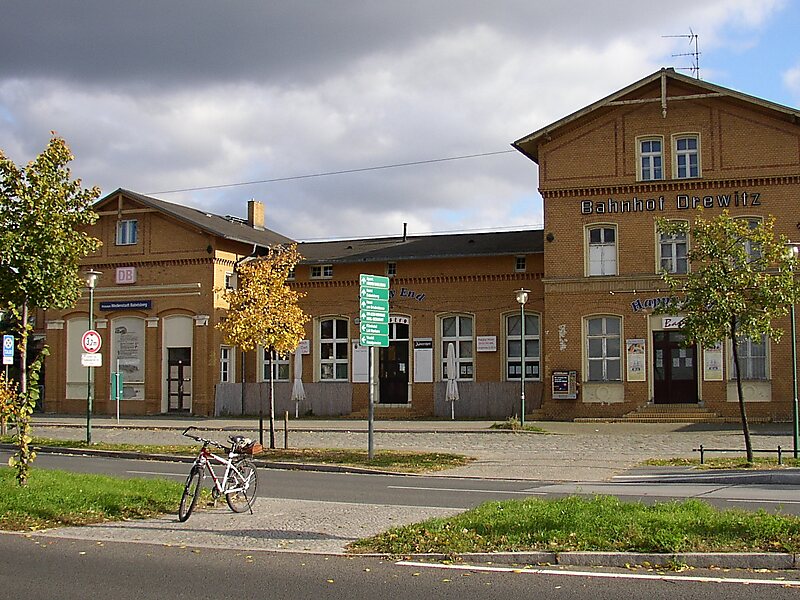 Der Bahnhof wurde am 15. Mai 1879 unter dem Namen Drewitz eröffnet. Er war von 1949 bis 1990 im Güterverkehr Grenzübergangsstelle der DDR nach West-Berlin. Zahlreiche Sicherheitseinrichtungen wurden hierzu eingebaut wie besondere Schutzweichen, die ein unberechtigtes Weiterfahren des Lokomotivführers in Richtung Berlin-Wannsee verhindern sollten. Unter diesen Schutzweichen waren auch einige Entgleisungsweichen, die nur über eine Weichenzunge verfügten und den unberechtigt ausfahrenden Zug zum Entgleisen bringen sollten.