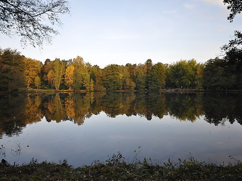 Der ehemalige Abfluss wurde durch einen 15 Meter breiten Kanal, dem Inselkanal, und ein System von rechteckigen Teichen und Seen ersetzt, die weiterhin in den Bramfelder See münden und zum Moorkampgraben gehören.