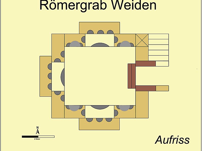 Römische Gräber lagen in der Regel an den Ausfallstraßen eines Ortes. Auf diese Weise konnten Reisende der Toten gedenken, die so die Erinnerung bewahren. Ein besonders aufwändiges Grab befand sich an der Fernstraße Via Belgica von Tongern nach Köln, ca. neun Kilometer vor dem Westtor der Colonia Claudia Ara Agrippinensium im heutigen Stadtteil Weiden. In der reich ausgestatteten Grabkammer einer nahe gelegenen Villa rustica wurden mehrere Generationen einer wohlhabenden, römischen Familie bestattet.