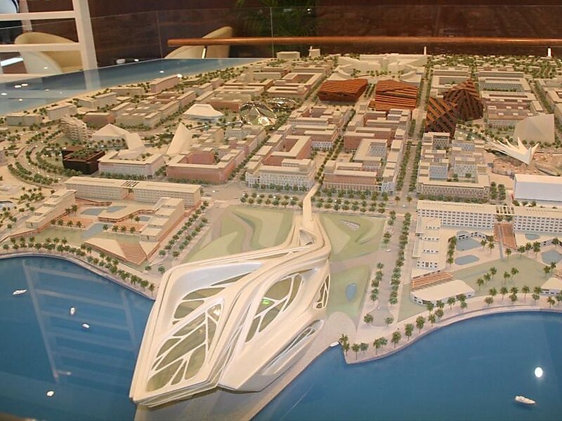 Die Insel Saʿadiyat liegt etwa 500 Meter östlich des Hafens von Abu Dhabi.