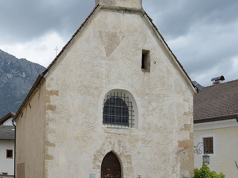 Die Kapelle wurde in der Bauzeit der zweiten Pfarrkirche, also im 12. Jahrhundert, errichtet. Aus dieser Zeit stammt die Rundapsis, die markant an der Ostfassade hervorsteht, andere Bauelemente wie die beiden Rundbogenfenster wurden aber vermutlich erst zu späterer Zeit vermauert. Im Dorfbrand von 1440 wurde das Gebäude beschädigt, aber sehr schnell wieder instand gesetzt. Die alte Holzdecke des Obergeschosses wurde dabei durch ein spätgotisches Sterngewölbe mit Rippen ersetzt.