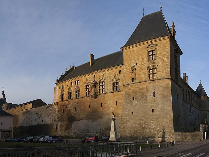 Die heutige Anlage geht auf eine Burg vom Ende des 11. Jahrhunderts zurück, auf deren Fundamenten Martin de Custines ab 1572 ein Schloss im Stil der Renaissance errichten ließ. Beschädigungen aus dem Dreißigjährigen Krieg wurden im 17. Jahrhundert nur zum Teil beseitigt, ehe Nicolas-Francois de Lambertye sie durch einen Wiederaufbau ab 1730 vollständig beseitigte. Kurz nach Ende des Zweiten Weltkriegs, bei dem ein Flügel der Vorburg fast vollständig zerstört worden war, wurde die Anlage am 11. April 1947 als Monument historique unter Denkmalschutz gestellt. Am 11. August 1987 erfolgte die Aufnahme großer Teile des Schlosses als monument classé in die nationale Denkmalliste Frankreichs.
