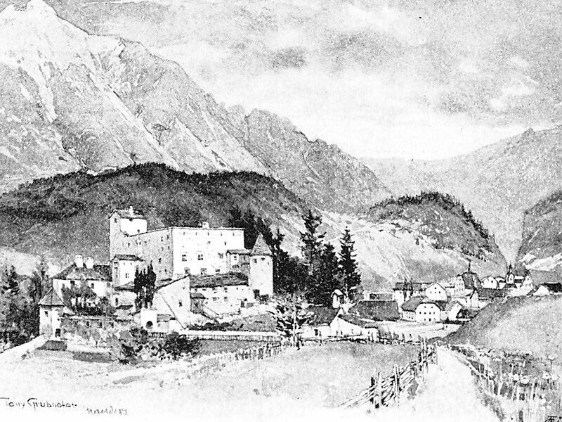 Das Schloss Naudersberg steht auf einem Hügel über dem Ort Nauders im österreichischen Tirol.