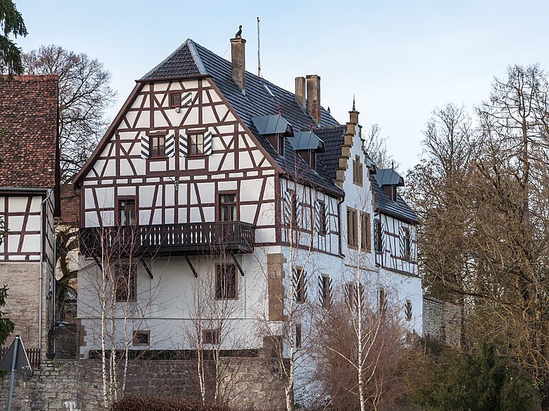 Es handelt sich heute um eine Gutshofanlage mit mehreren Fachwerkbauten. Das Herrenhaus auf einem Steinsockel ist zweigeschossig mit Krüppelwalmdach. Die Inschrift im Torhaus lautet: „Anno domi 1540 do Hot der edel un ernvest Gotfridt vo Berlichen dis Haus erbaudt“. Sie bezieht sich auf Götz von Berlichingen. Schlossherrin ist heute Alexandra von Berlichingen.
