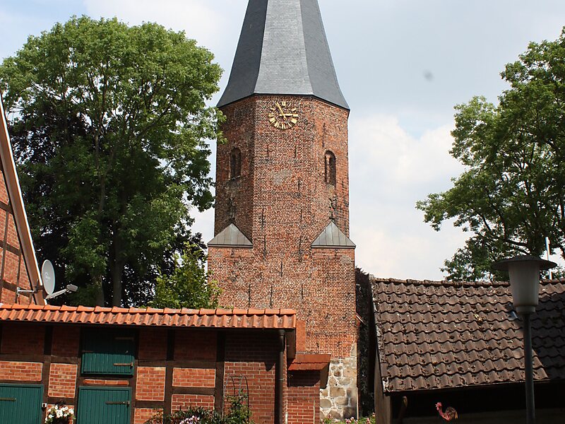 Sie ist eine stattliche spätromanische Saalkirche aus Backstein mit halbrunder Apsis und vorgestelltem Westturm mit Pyramidenhelm. Erbaut wurde sie im Jahre 1264 von den Junker von der Eck aus Dreeke. Eine Vorgängerkirche wurde schon 890 erwähnt. Diese dürfte zu den Pfarreien gehört haben, die von der Missionszelle in Visbek gegründet wurden und deren Patronat am 20.