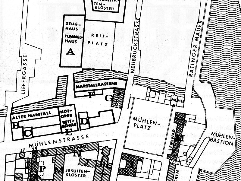 Das Düsseldorfer Stadthaus liegt in der Düsseldorfer Altstadt an der Mühlenstraße. Im Osten wird es durch St. Andreas begrenzt, im Süden durch die Andreasstraße und im Westen durch die Mertensgasse. Das Stadthaus, wie es vor allem nach 1945 genannt wurde, hat eine bewegte Bau- und Nutzungsgeschichte hinter sich, die wiederum eng mit der Geschichte der Stadt Düsseldorf verknüpft ist. So wurde das Haus im Laufe der Jahrhunderte als Kloster, Schule, Sternwarte, Regierungs- und Verwaltungsgebäude, Polizeipräsidium und NS-Gedenkstätte genutzt.