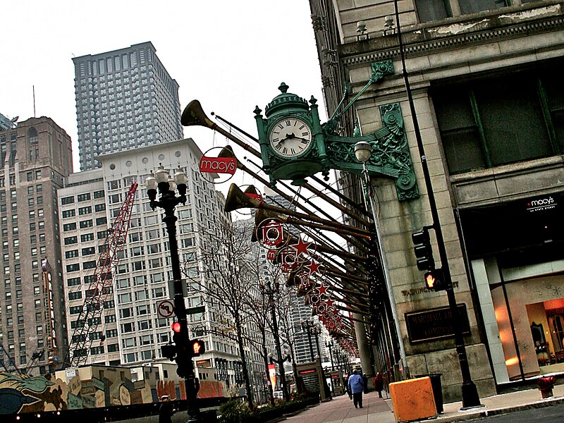 Diese Straße beherbergt das zweitgrößte Kaufhaus der Welt - Macy's. Einige der Nicht-Shopping-Eigenschaften dieses Geschäfts sind das größte ununterbrochene Tiffany Favrile Glas (das Farbglas ist nicht nur auf der Oberfläche, sondern es ist in das ganze Material eingebettet) der Welt oder der Burnham-Brunnen. Macy's organisiert jährlich Veranstaltungen, wie die Spring Flower Show und die Glamourama Fashion Show.