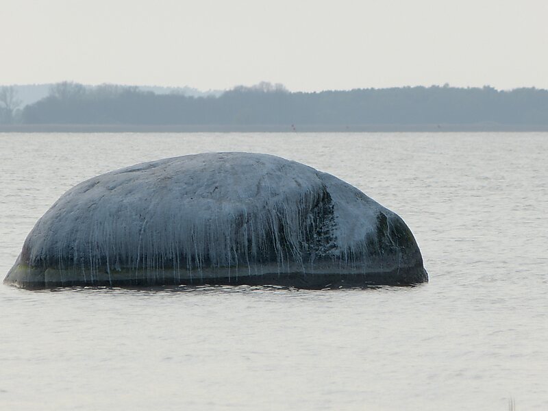 Der Findling ist 4,0 Meter lang, 3,8 Meter breit und 2,7 Meter hoch, wovon durchschnittlich 1,2 Meter unterhalb des Wasserspiegels liegen. Der Umfang beträgt 10 Meter. Das Volumen wurde zu 22 Kubikmeter berechnet. Er besteht aus Granit mit blauem Quarz und wurde während der Weichseleiszeit durch Gletscher aus Småland nach Vorpommern gebracht.