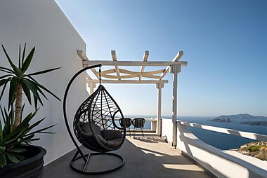 Boasting Aegean Sea and Caldera views from their furnished balcony, Athermi offers luxurious suites in Megalochori of Santorini.