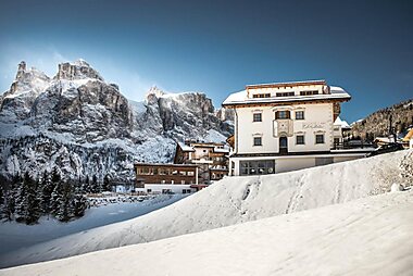 Set directly on the Colfosco slope in the Alta Badia ski area, Residence Vila offers panoramic views of the Dolomites.