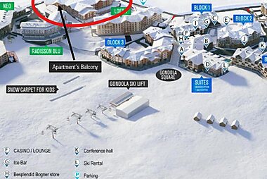 The accommodation provides ski storage space, as well as a casino and a bar.