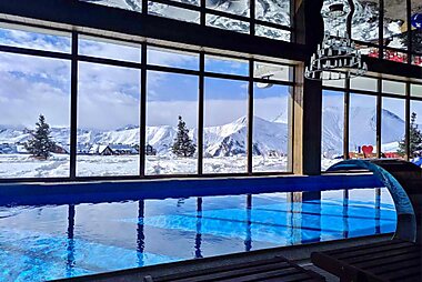 Providing mountain views, Dea's Apartment Gudauri in Gudauri provides accommodation, a restaurant, a bar, a shared lounge, ski-to-door…