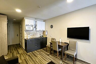 Offering a restaurant and a bar on site, Apartments in New Gudauri features free WiFi, a ski-to-door access and a terrace; free parking is…