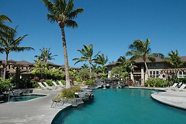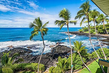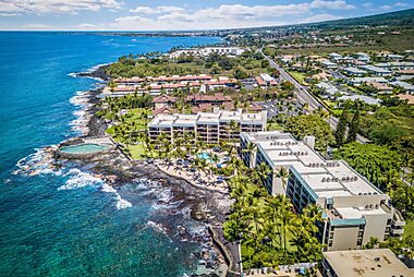 Overlooking the Pacific Ocean, this resort in Kailua-Kona, Hawaii features an oceanfront outdoor pool and spacious suites with a fully…