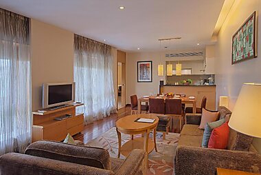 Oakwood Residence Pune is located in the heart of Koregaon Park. The apartments are fitted with a functional kitchen.