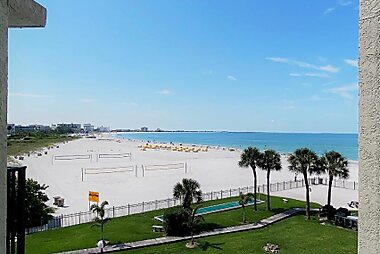 These St. Pete Beach, Florida apartments boast a fully equipped kitchen and balcony with view of the Gulf of Mexico.