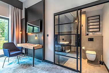 Located near Ostroda, Natural Hotel-Ostróda-basen na III kondygnacji-pokoje wellness z saunami offers accommodations with a balcony or a…
