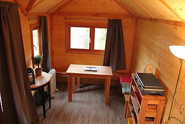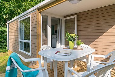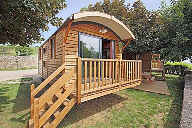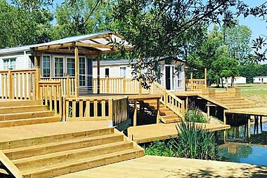 Huttopia Rambouillet provides furnished caravans and chalets in the Rambouillet Forest beside the Etang d’Or (Golden Pond).