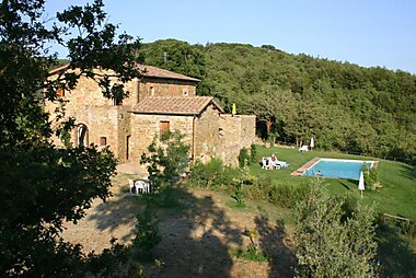 Set in the Tuscan countryside with views of the hills of Siena, Podere Calcinaia offers rustic accommodation, and a garden with patio, wood…