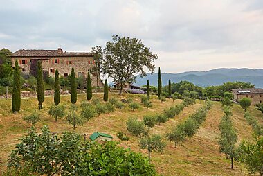 Set in a 12th-century castle in Greve in Chianti, the Castello Di Montegonzi is surrounded by cypress-covered hills.