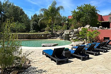 Boasting a swimming pool, a bar, a garden and views of the mountain, NAMASTÉ r is set in Sant Rafael de Sa Creu and offers accommodation…